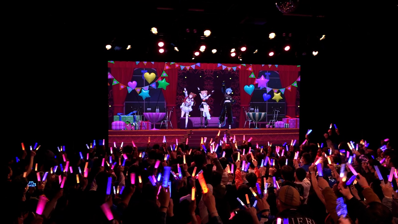エンディングトークでは、メンバー同士が感謝のメッセージを伝え合い、それぞれのメンバーがみんなに対して安心感を覚えているということを聞き、会場は温かい雰囲気に包まれた。花京院ちえりが「何か言い残したことはありますか?」と会場へ問いかけると、予行練習なしにもかかわらず、観客が息を揃えて「今日もちえりちゃんは可愛いな~!」と応える一幕も。さらに、七星みりり、リクムの「夢見るミルキーウェイは~?」「てぇてぇ~~!!」と掛け合いコールが響き渡るなど、一体感溢れる盛り上がりを見せながら、第2部は締めくくられた。
