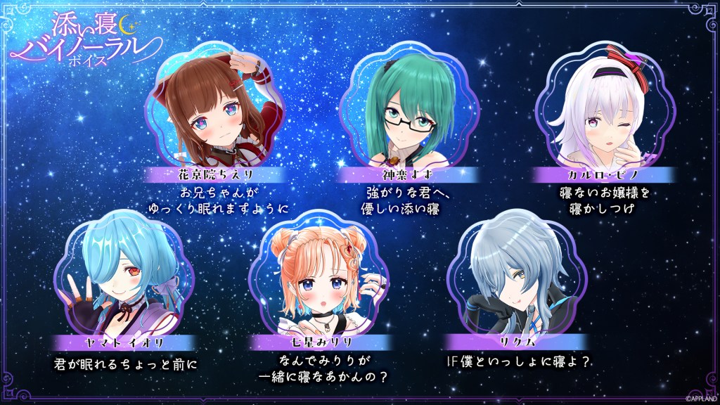 アップランド所属「.LIVE」・「ぶいぱい」メンバーによるバイノーラルボイスを4月23日(水)より販売いたします!『添い寝』をテーマに、.LIVEメンバーとぶいぱいメンバーそれぞれが考案した、バイノーラルのシチュエーションボイスが楽しめるコンテンツです。是非お楽しみください!
