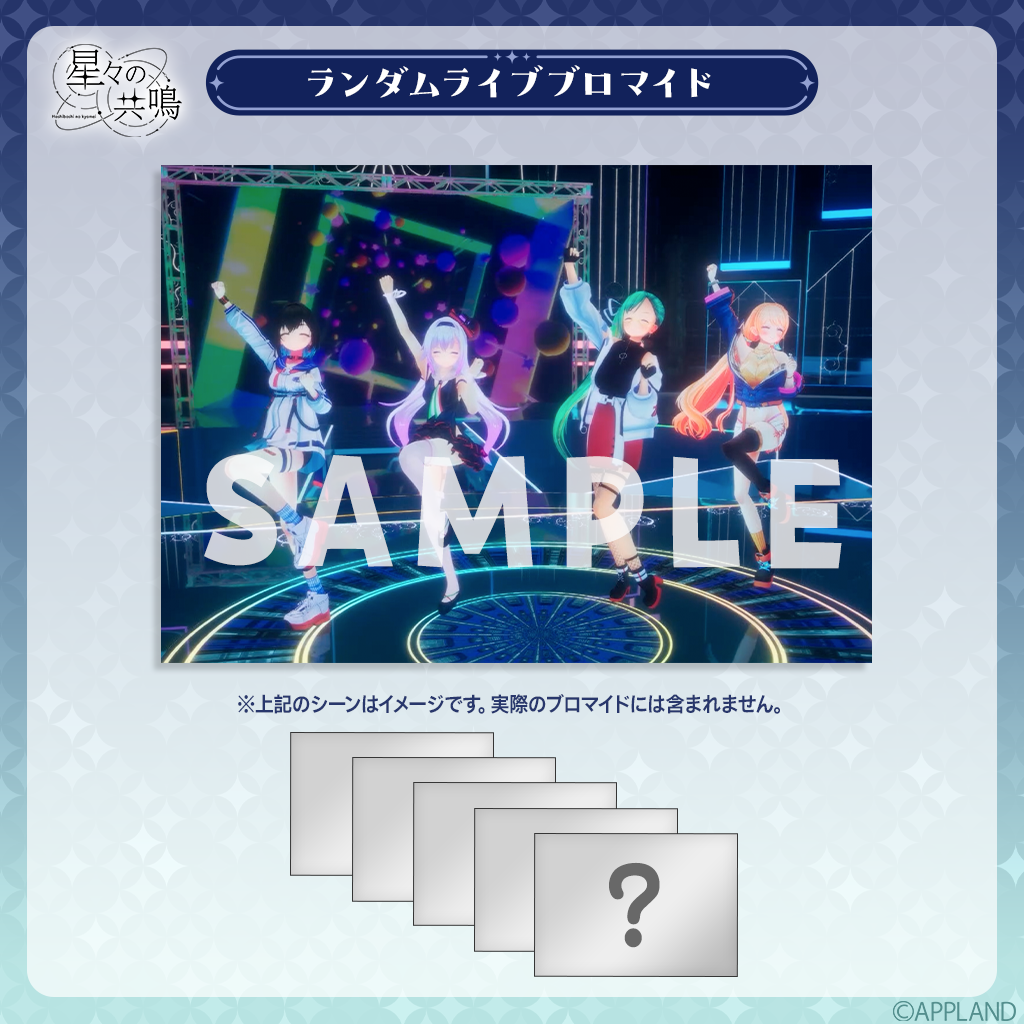 株式会社アップランド(本社:東京都世田谷区、以下「当社」)が運営する「.LIVE」・「ぶいぱい」メンバーによる音楽LIVE『星々の共鳴』&『花京院ちえり 2ndソロライブ ふぁんしーふぁんきーぱれーど』の事後販売グッズをAPPLAND OFFICIAL SHOPにて販売することをお知らせします。